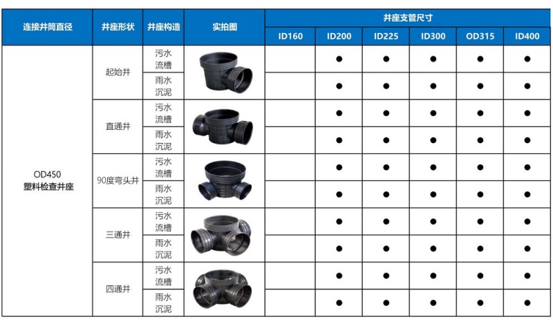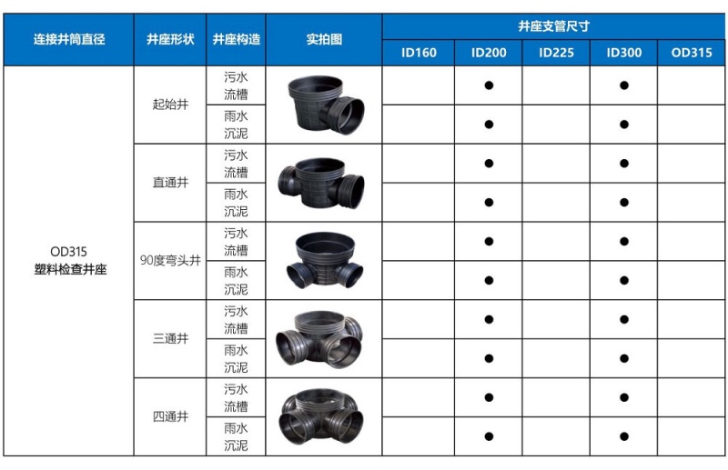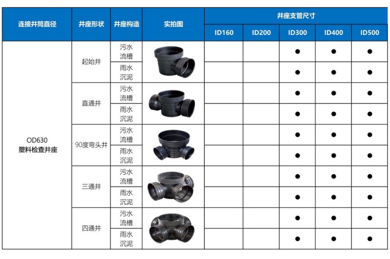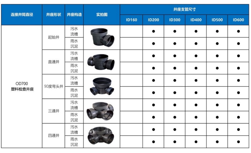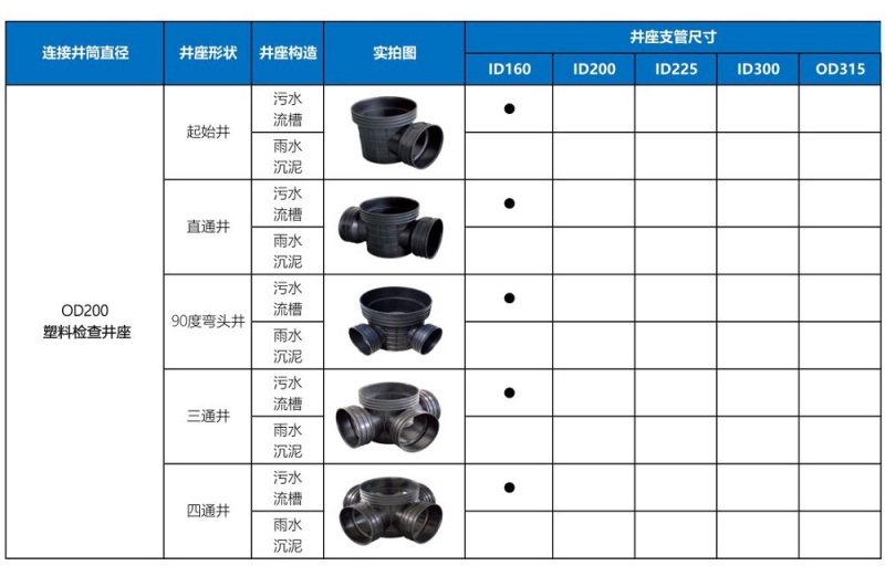 ◆ 尺寸齊全,檢查井座尺寸從OD200到OD1000尺寸齊全,可全面滿足各類(lèi)工程的施工需求。